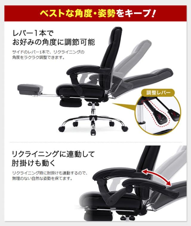 OAチェア パソコンチェア パソコンデスク デスクワーク 会社 仕事 事務 書斎 業務用 プレジデントチェア エグゼクティブチェア 社長椅子 いす イス 椅子 おしゃれ オシャレ お洒落 おすすめ オススメ アームレスト付 レザー 革 リクライニング オットマン 肘掛 ひじ掛け ひじかけ ふかふか フカフカ リラックス