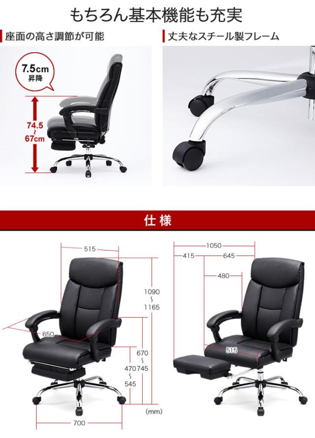 ■サイズ:外寸:W700×D700×H1090〜1165mm/背もたれ:W515×H670mm/座面(座面調節):W515×D480×H470〜545mm