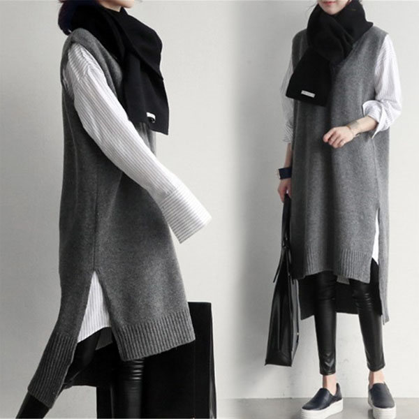 Vネックニット ノースリーブ セーター ジャンパースカート ニット レディース ニットワンピース ジャンスカ Vネック ワンピース