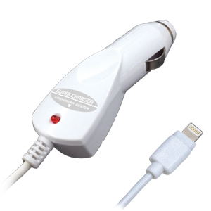 ●車のシガーライターソケットからLightningコネクタのiPad/iPhone/iPodをハイパワー2.4Aで充電可能なDC充電器。