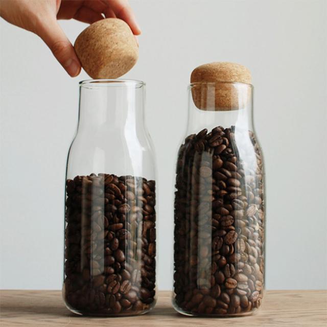 こだわりのコーヒー豆、お気に入りハーブティ、グラノーラやスパイスなど、気がつけばキッチンにたくさん揃っている。そんな食材を透明の耐熱ガラスと有機的な丸みのあるコルクリッドのボトルの中にストックすれば、見た目に楽しくキッチンをちょっと上質な空間に演出してくれます。