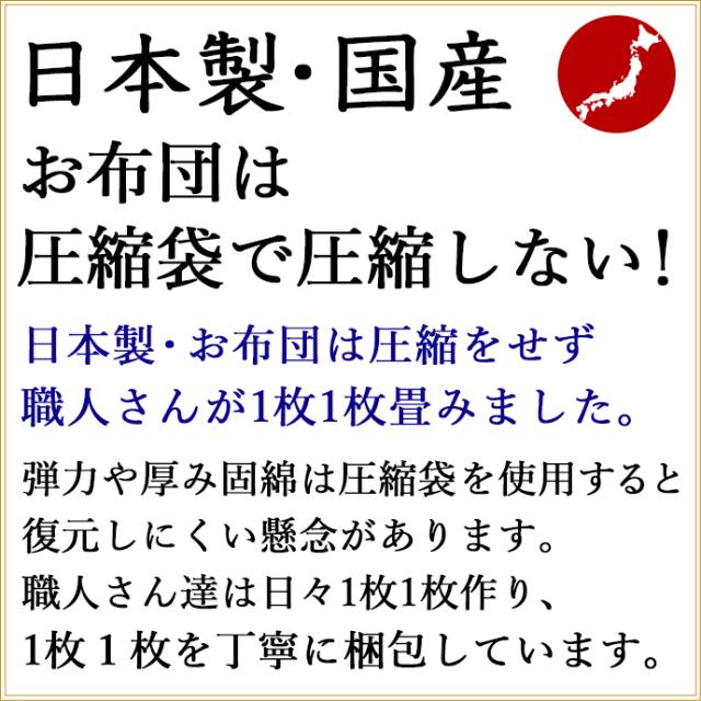 日本製の布団は圧縮袋で圧縮をせずに、職人さんが1枚1枚たたみました。