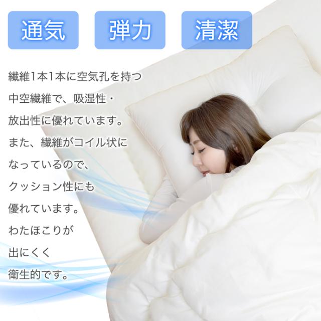 中綿:【国産】上質な中空ポリエステル100% 【ほこりが出にくい布団】