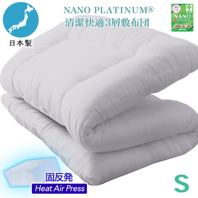 日本製 敷布団 ボリュームアップ 敷き布団 シングル S 固綿入り 1KS 三層構造 増量 ほこりが出にくい 厚さ 約 10cm 最大 期間限定 NANO プラチナ 消臭 制菌 抗菌 防臭 ニオイ対策 防ダニ 吸汗 速乾 清潔布団 国産 敷き布団 しき布団 ふとん 固綿 ホテル仕様 ホテルライク
