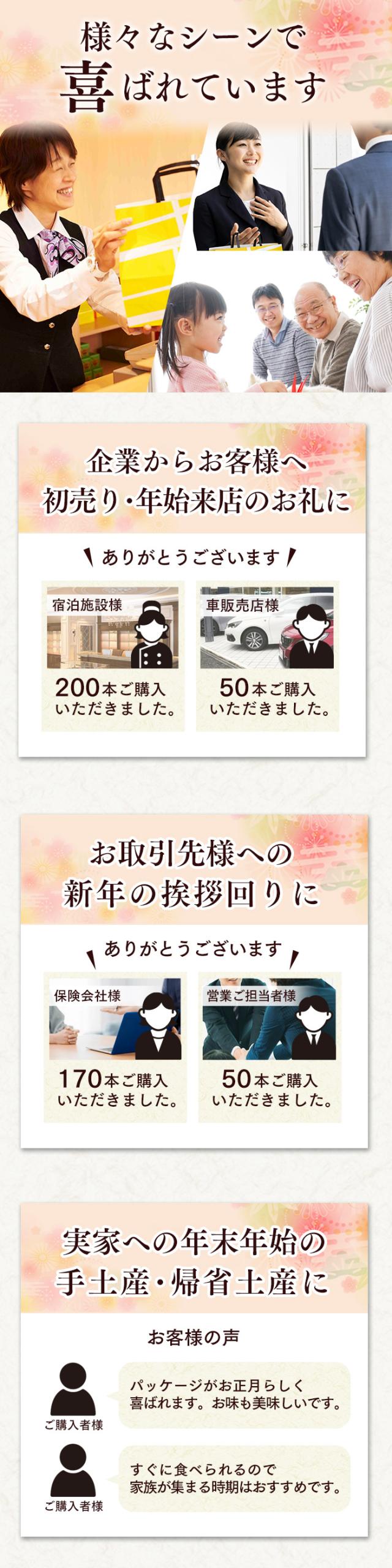 - 挨拶用のお年賀がいつも一緒で、パッとしなかったので、今回初めての利用でした。 個別の袋も付いてて助かります。 また急にもかかわらず!早い対応で助かりました。