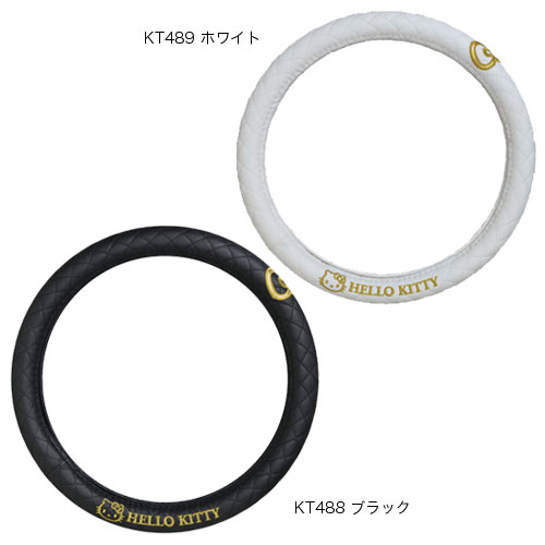 ハローキティ ハンドルカバー | カスタム ハンドル カバー 車内インテリア キティ キティー ハローキティー 黒 白 キルティング