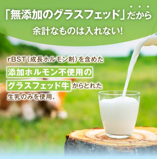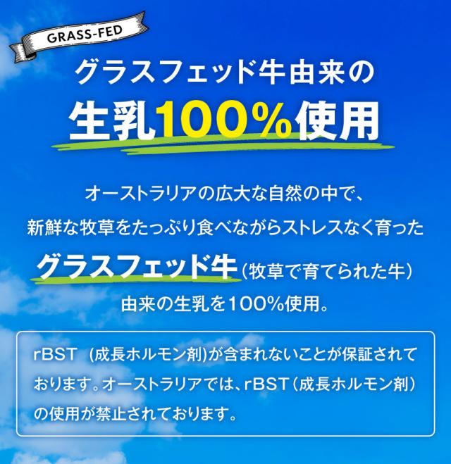 オーストラリアの広大な自然の中で、牧草を食べてストレスなく育ったグラスフェッド牛(牧草で育てられた牛)由来の生乳100%を使用。