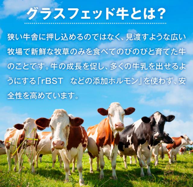 ※グラスフェッド牛(牧草で育てられた牛)は、厳格な基準としてしられるUSDA(米 国農務省)が定義に適合しております。