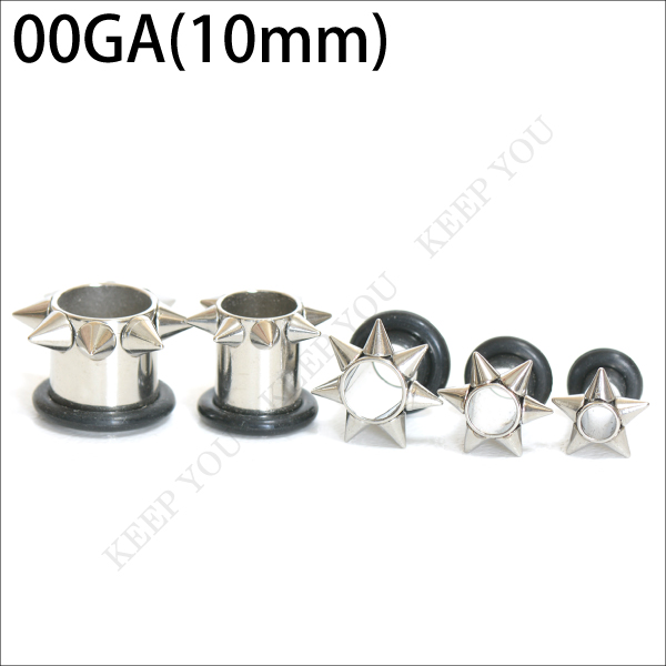 メール便 送料無料 ボディピアス チューブ 00G/10mm スパイク スタッズ サージカルステンレス316L(医療用) ボディピアス【チューブ 鋲 トゲトゲ アイレット イヤーロブ】 00ゲージ(10ミリ)┃