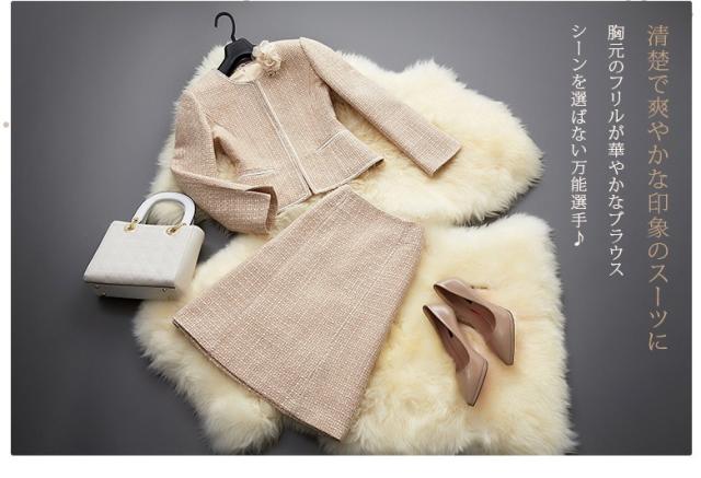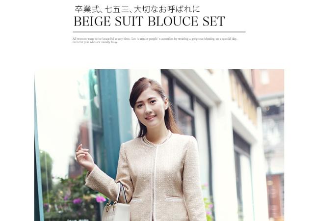●光沢のない上品なベージュに清楚で爽やかな印象のスーツです。