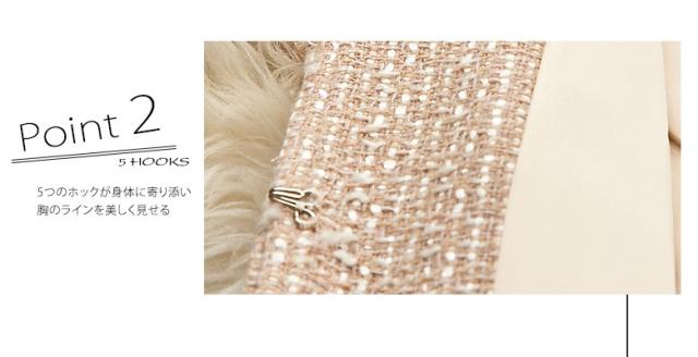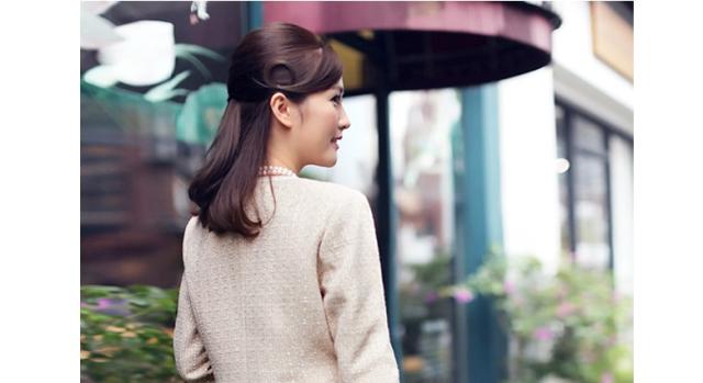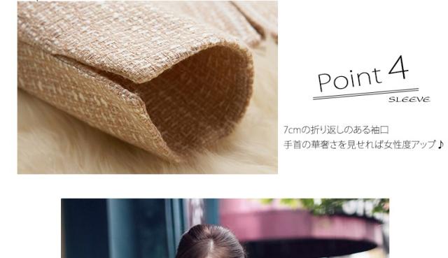 ●ジャケットは5つのホックが身体に寄り添い胸のラインを美しく見せる、7cmの折り返しのある袖口が手首の華奢さを見せれば女性度アップ、スリットのないデザインは無垢で初々しく。