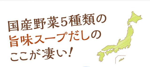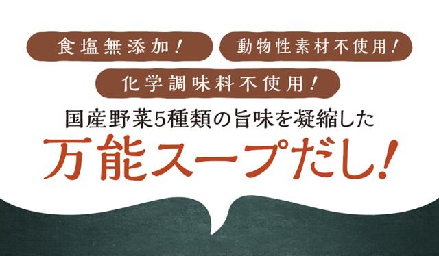 | 商品名 | 食塩無添加 国産野菜5種類の旨味スープだし |
