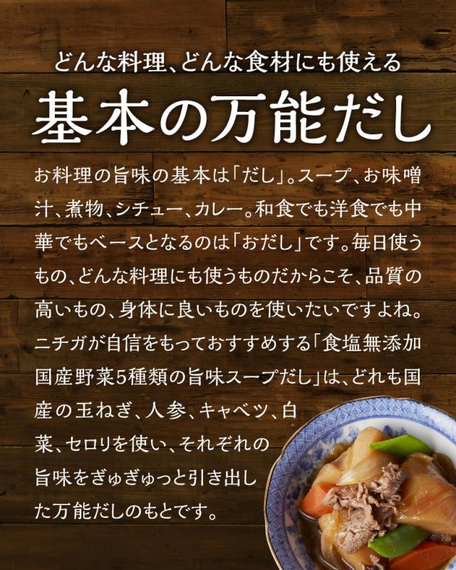 食塩無添加 国産野菜5種類の旨味スープだし 150g 化学調味料無添加 動物性素材不使用 だしの素 業務用 無添加 だし 栄養スープ 旨味だし 旨味 スープ だしの素 うまだし 野菜だし [02] NICHIGA(ニチガ)