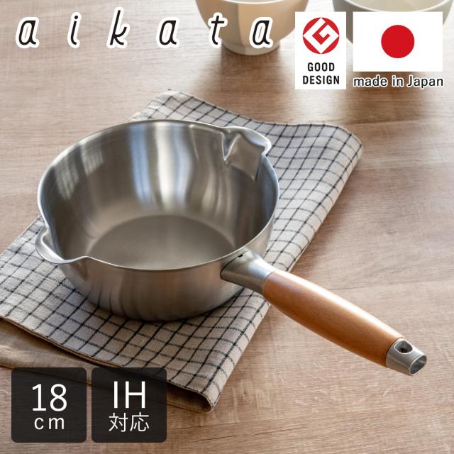 雪平鍋 18cm IH対応 アイカタ 両口 ステンレス製 日本製 片手鍋 ( 行平鍋 ゆきひら鍋 なべ お鍋 ガス火対応 オール熱源対応 注ぎ口付き 18センチ ステンレス製雪平鍋 注ぎ口あり 両口鍋 燕三条 調理器具 キッチン用品 )