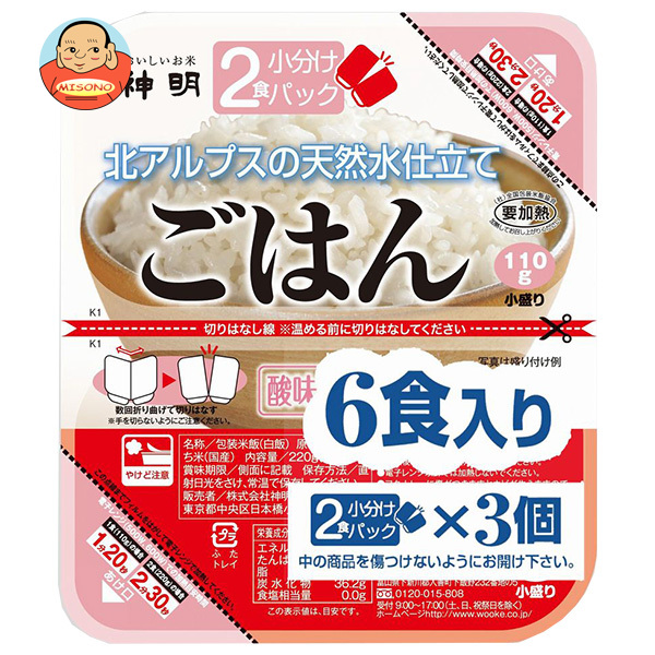 神明 2食小分けパック 北アルプスの天然水仕立て (110g×2食×3P)×8袋入| 送料無料 ごはん(レトルト) レトルトご飯 パックご飯 ごはん