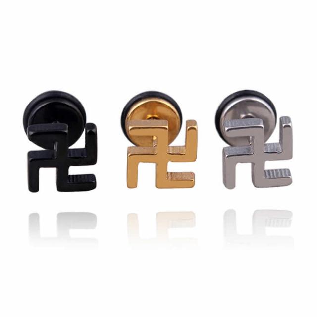 [フェイクボディピアス 16G おもしろ ] 卍/マンジ プラグ型キャッチ ボディーピアス 16ゲージ 寺院 寺社 ブラック ゴールド シルバー 黒色 金色 メンズ レディース ネジパーツ サージカルステンレス 大きく見せる 細いサイズ ストレートバーベル 軟骨 ヘリックス 耳