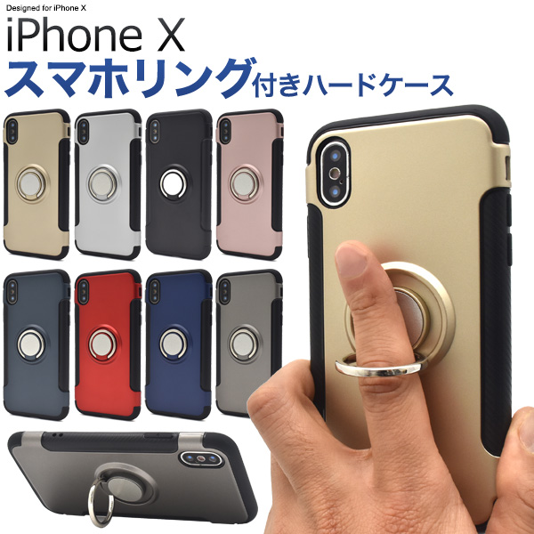 iPhoneX iPhoneXS用 スマホリングホルダー付きケース アイフォンテン シンプル かわいい きれい スマホカバー