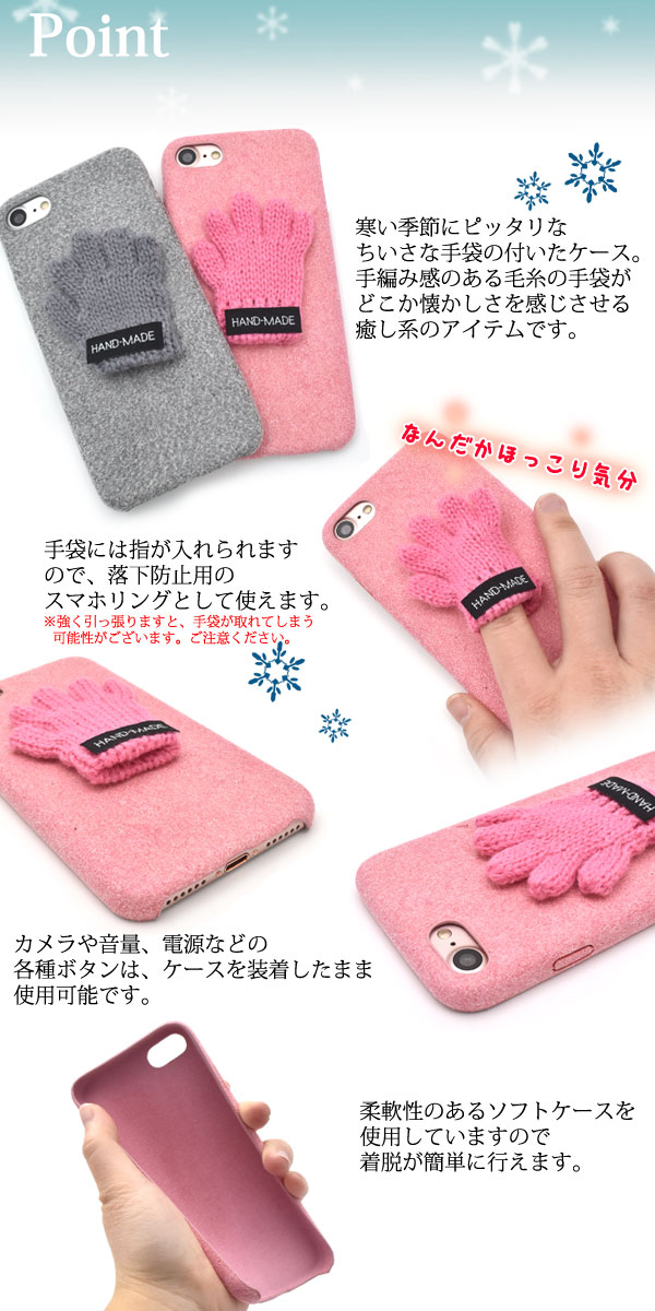 スマホケース iPhone8 iPhone7 iPhoneSE(第2世代 / 第3世代)SE2 SE3 第二世代 第三世代 手編み風 ミニ手袋付ケース かわいい アイフォン用 スマートフォン 保護 カバー