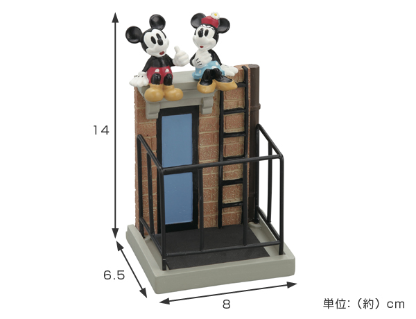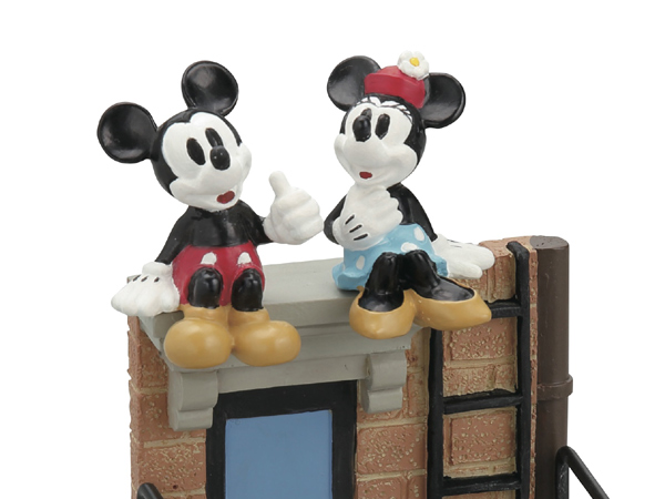 レンガ作りの建物の上でミッキーとミニーがお喋りしている様子が再現されています。今にも動き出しそうなミッキーとミニーが存在感のあるデザインです。