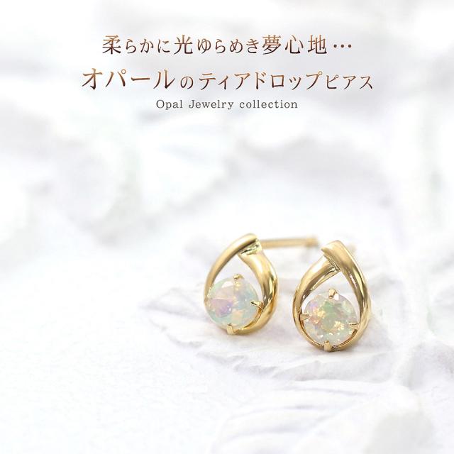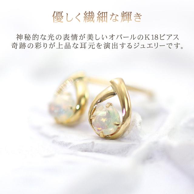 18金 ピアス レディース オパール k18 ゴールド 一粒 (両耳) 18k エチオピア 雫型 ジュエリー プレゼント アクセサリー 10月 誕生石 18金ピアス オパールピアス シンプル 小ぶり 小さい 小さめ クリスマス プレゼント 誕生日 女性 彼女 娘