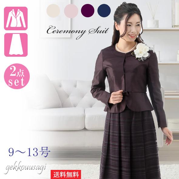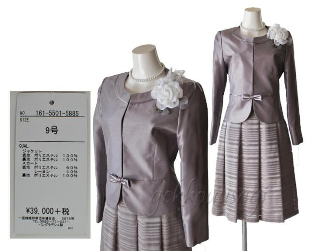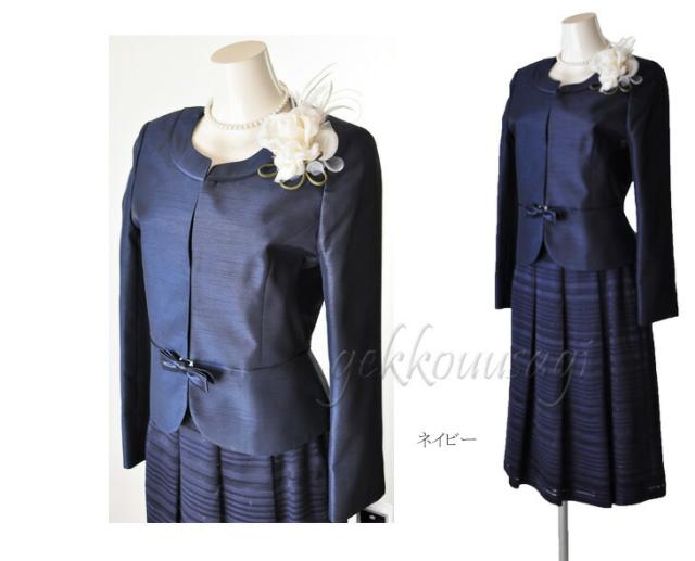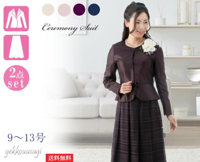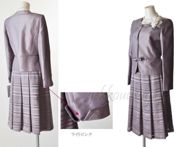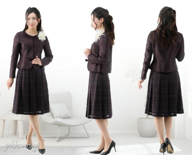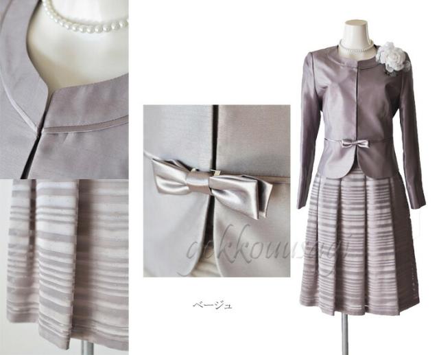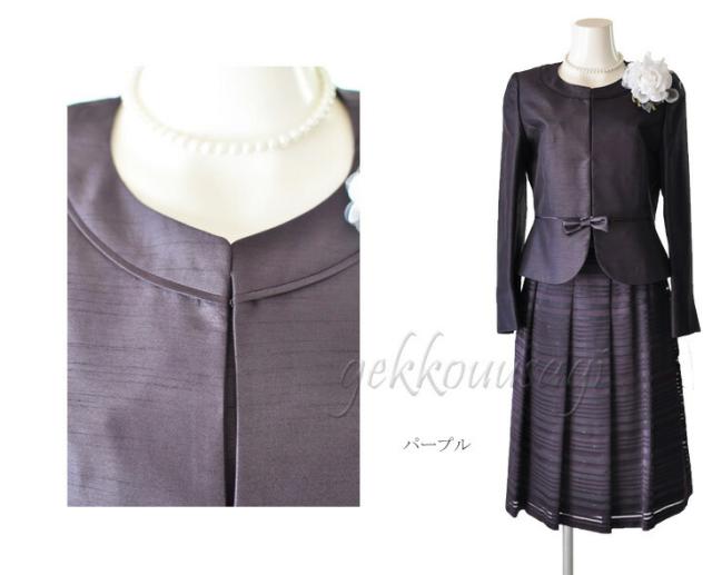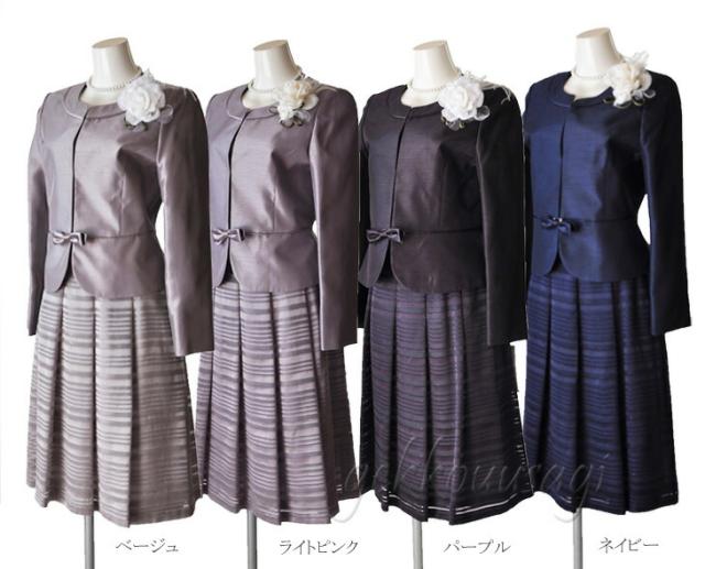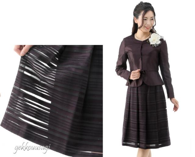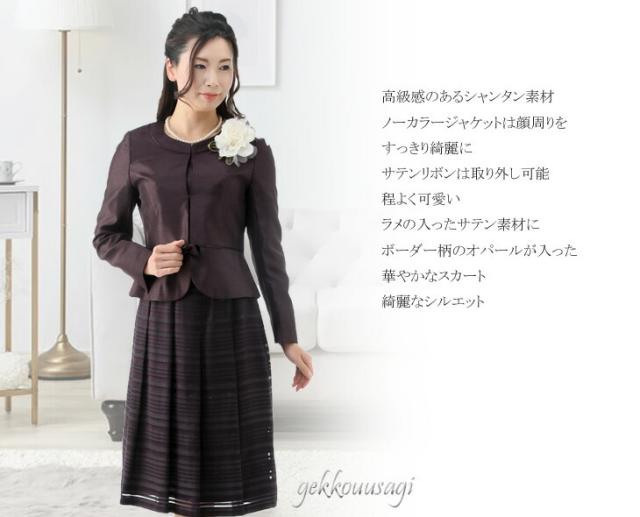 スーツ レディース 入学式 ママスーツ 卒業式 七五三 お宮参り 結婚式 入学式 ソフトシャンタン×ラメオパールボーダー柄スカート2点スーツ 光沢感 5885