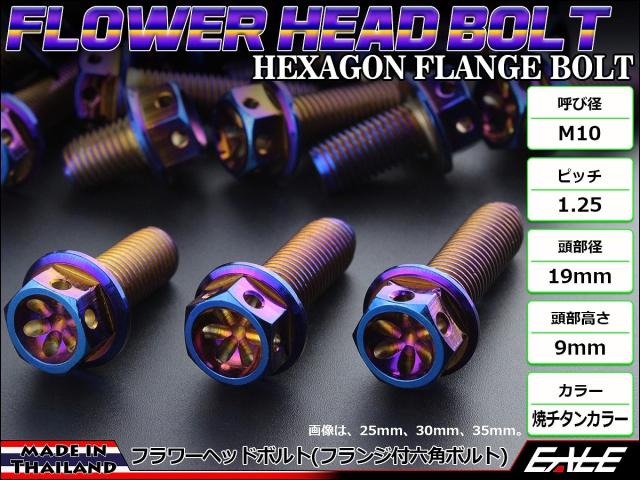 M10×60mm フラワー ヘッド ボルト ステンレス 削り出し フランジ付六角ボルト フレームやエンジン周りに 焼チタンカラー TB0589