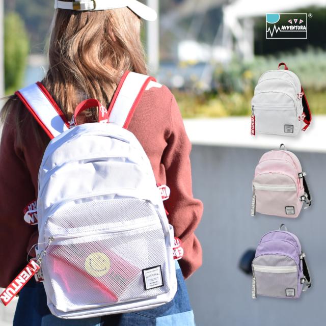 AVVENTURA リュック デイパック レディース 女子 二層式 ブラック/ホワイト/パステルピンク/パステルパープル 小さめ おすすめ 入学式 卒業式 新学期 ギフト プレゼント