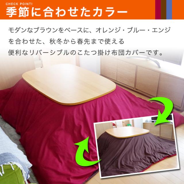 - 今年はこたつ布団のカバーが欲しいと思い、朝に注文したら夕方には配達して頂いてて、寒くなってきたので有り難かったです。色合いも気に入り(エンジ&ブラウン)どちらでも使えるのでいいです。