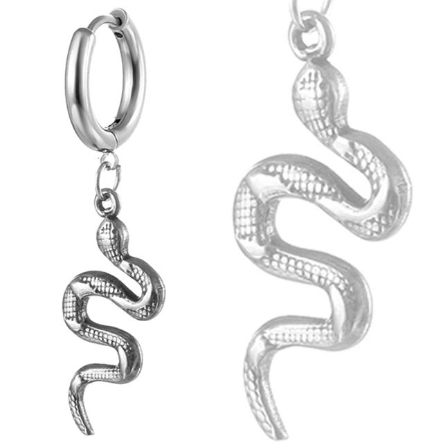 存在感のある大きなスネークのチャームは遊び心のある面白いステンピアス。