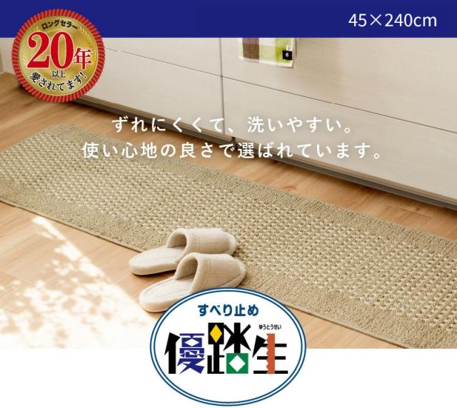 キッチンマット 45×240cm 日本製 ラグ ラグマット おしゃれ 洗える 滑り止め加工 マット キッチン 台所マット 廊下マット 新・優踏生 送料無料