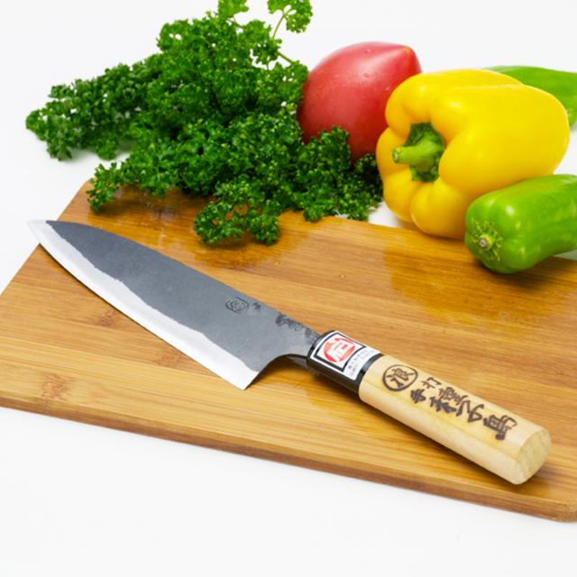 【鉄砲伝来以来470余年を誇る伝統の切れ味。】鉄砲伝来以来470余年を誇る伝統の切れ味を楽しめます。万能包丁は、刃が薄いため、冷凍食品や半解凍のものを強い力で使用すると刃が欠ける場合がありますのでご注意下さい。使用後は洗剤で洗い、充分に乾拭きして下さい。刃渡り15cm・軟鉄+鋼鉄