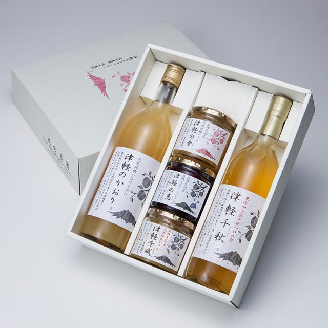 【2種類のジュースと3種類のジャム、完熟りんごを堪能できるセットです。】津軽平野のほぼ中心に位置し、りんごの栽培に適した気候風土を生かして「日本一のりんごの里」をめざす板柳町で、青森県からエコファーマーの認定を受けた成田農園が、丹精込めて育てた完熟りんごで作った産品の詰め合わせです。除草剤は一切使用せず、農薬の使用をできるだけ抑え、有機肥料で育てたりんごは、芳醇な香りと濃い味わいが生まれます。5種類の完熟林檎をブレンドした100%果汁のりんごジュース「津軽のかおり」、生産量の希少な千秋だけで作った100%果汁のりんごジュース「津軽千秋」。2種類の完熟りんごをブレンドし、りんご本来の果肉と食感を生かしたプレザーブスタイルのジャム「津軽の幸」。完熟りんごと青森県産カシスのミックスジャム「津軽の恵」。完熟紅玉だけで作ったジャム「津軽千成」。ジャムはすべて低糖度(約40度)です。素材が主役の本物の美味しさが、朝食やおやつのテーブルに幸せを運びます。