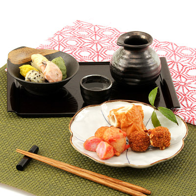 ●ちぎりあげ(ミックス):すけそうだら、チーズ、ごぼう、よもぎ、いか、いとより、澱粉、食塩、味醂、魚エキス、加工デンプン、調味料(アミノ酸等)、ビタミンC、(原材料の一部に小麦を含む)