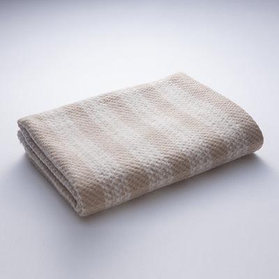 【有機農法の畑で育てられた綿だけで作られたブランケット。オーガニックコットンの心地よいやわらかさを。】富士北麓に位置する富士吉田市。この地に伝わる織物の伝統を受け継いだ前田源商店。同社が立ち上げたオーガーニックコットンブランドであるKai's organic products「オーガニックコットン・ブランケット」の綿花は、化学肥料や殺虫剤、除草剤、遺伝子組み換えの種は一切使用せず、肥沃な綿花畑で大切に育てられたもの。「NOC(日本オーガニックコットン流通機構)」の厳しい規定を満たすオーガニックコットンを使用した環境とお肌にやさしい商品です。ソファーの敷物や膝掛け、夏場の就寝時の肌掛け、赤ちゃんのおくるみ、さらに車内に1枚置いておけばちょっと肌寒い時やアウトドアで羽織るなど、一年中重宝します。ドピーの変り織をした生地に木毛化工を施し、生成りとカラードコットンを上品に組み合わせたチェック柄のブランケット。やわらかさと暖かさは想像以上です。