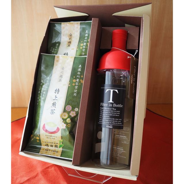 送料無料 美濃白川茶 水出し茶スタンダードセット〔HARIOフィルターインボトル750ml、特上煎茶2袋〕