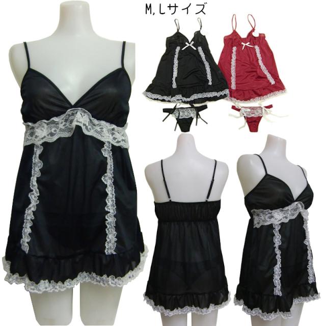 ベビードール Tバック ショーツ セット レース シースルー セクシー ランジェリー ルームウェア ナイティ ナイトウェア ブラック レッド M L メール便送料無料