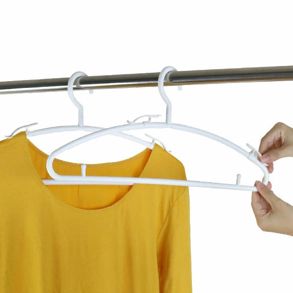 襟ぐりをしっかりキャッチ、サイドクリップ付きのハンガー