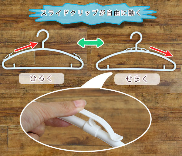襟ぐり広いカットソーもズレ落ちない、サイドクリップ付ハンガー