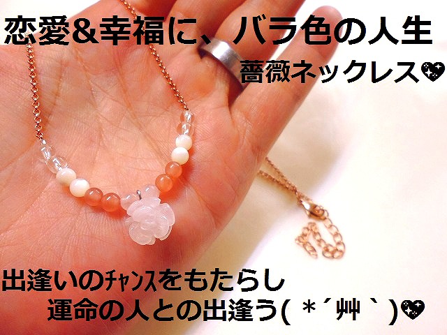 出逢いのチャンスをもたらし運命の人と出逢う★恋愛&幸福に、バラ色の人生★R薔薇ネックレス★ローズクォーツ★パワーストーン