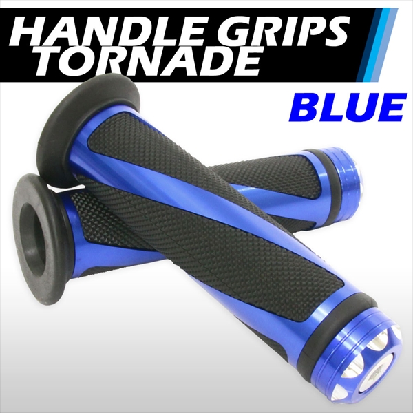汎用 ハンドル グリップ トルネード 22.2mm バイク用 アルミ&ラバーグリップ ブルー