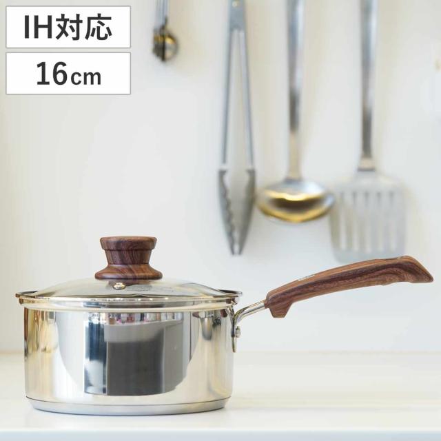 片手鍋 16cm IH対応 ウッディパル 3層底ガラス蓋付き片手鍋 ( ガス火対応 オール熱源対応 片手なべ 鍋 なべ ふっ素加工 軽い ガラス蓋付き 16センチ フッ素コーティング ステンレス製 軽量 蓋付き 1人暮らし 新生活準備 小さめ )
