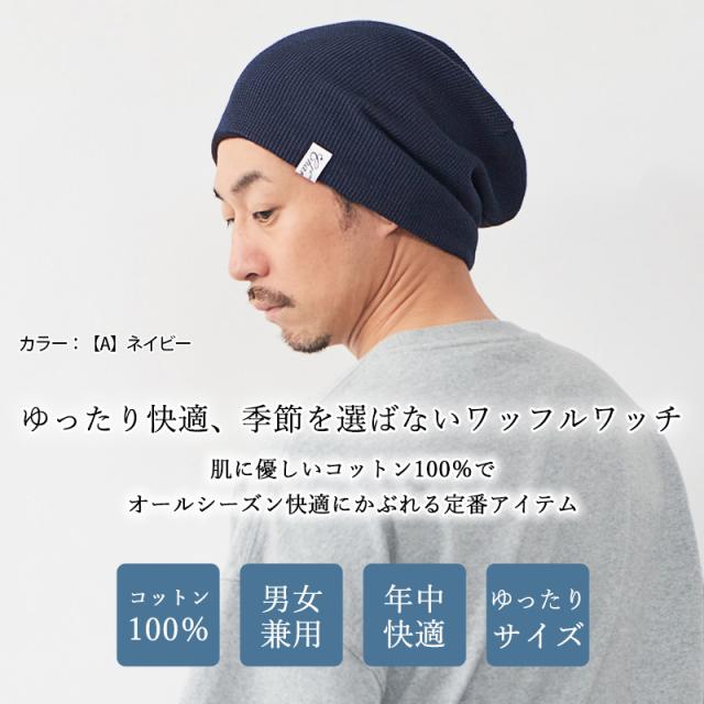 【メール便送料無料】 綿100% メンズ レディース オールシーズン 秋冬 冬用 コットン 帽子 ニット帽 ニット帽子 ニットキャップ ワッチキャップ サマーニット帽 ビーニー 大きいサイズ 医療用帽子 おしゃれ | CHARM LARGE ワッフル×ストレッチ ビック ワッチ bw-lws