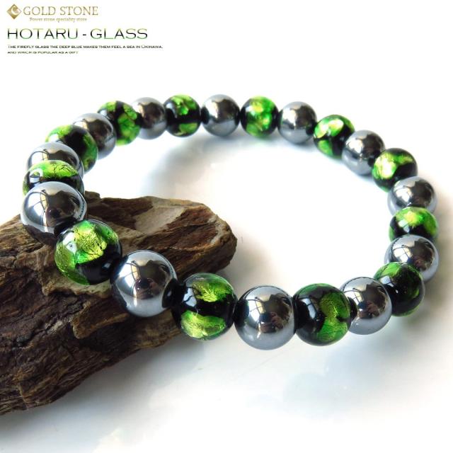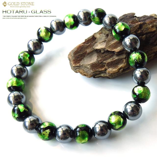 テラヘルツ鉱石 × ホタルガラス ライトグリーン 緑色 ブレスレット 8mm 24粒 パワーストーン