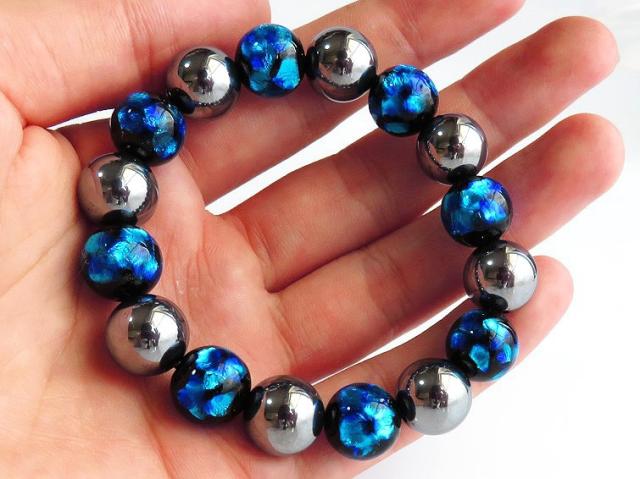 テラヘルツ鉱石 × ホタルガラス ブレスレット 12mm 16粒 パワーストーン