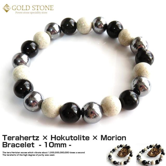 テラヘルツ鉱石 × 北投石×モリオン(黒水晶)ブレスレット10mm21粒 パワーストーン