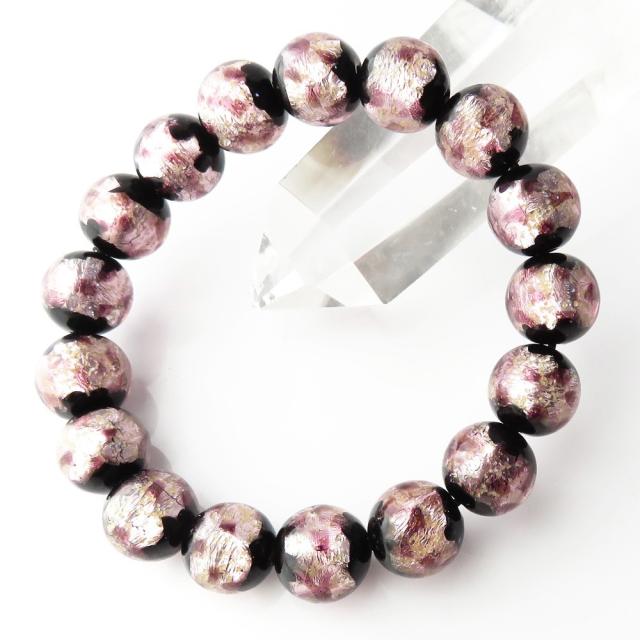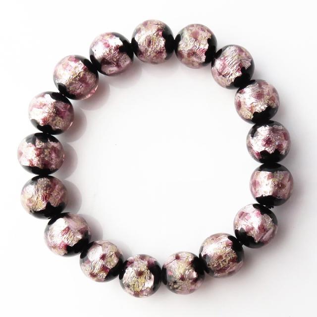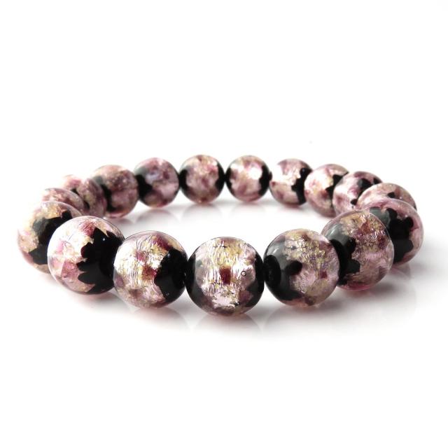 光る 夜光タイプ ホタルガラス ブレスレット12mm 桜カラー ピンク とんぼ玉 沖縄 お土産
