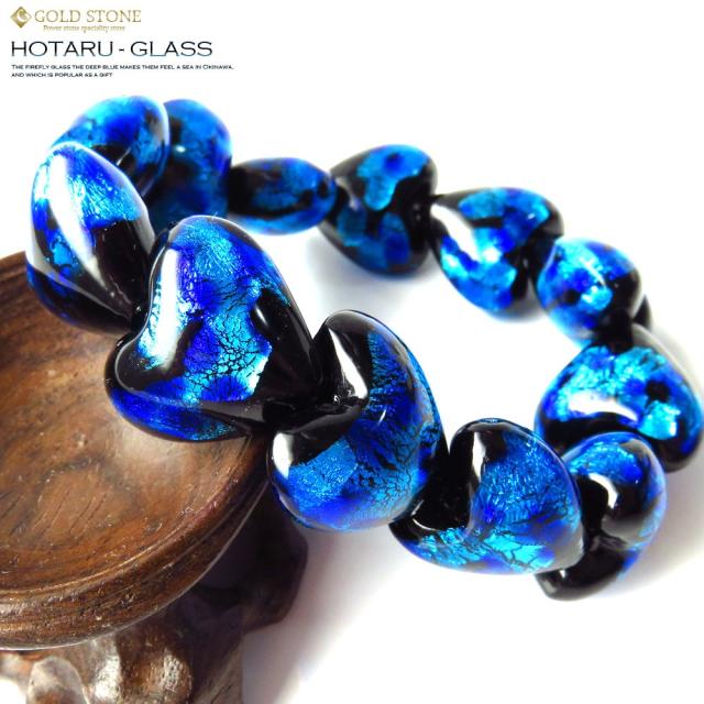 ホタルガラス ブレスレット ハート型 サイズ大 19 x 20 x 12mm 沖縄 人気 お土産