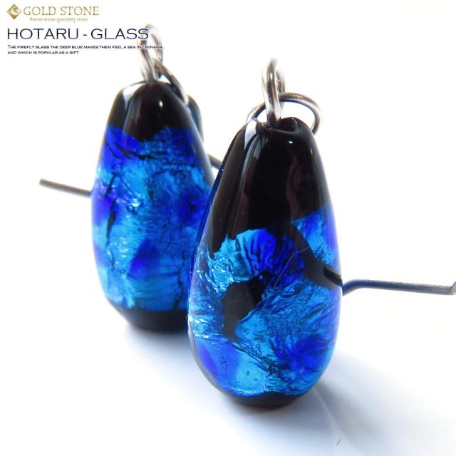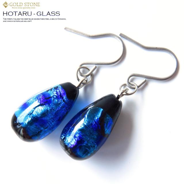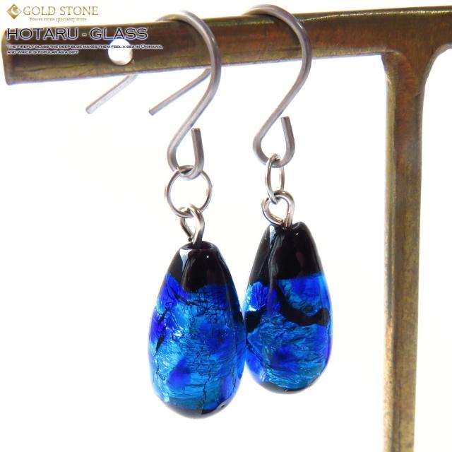 ホタルガラス ピアス しずく型 ドロップ チタン製 両耳用 とんぼ玉 沖縄 お土産