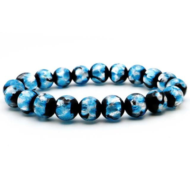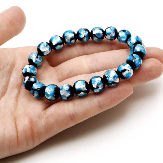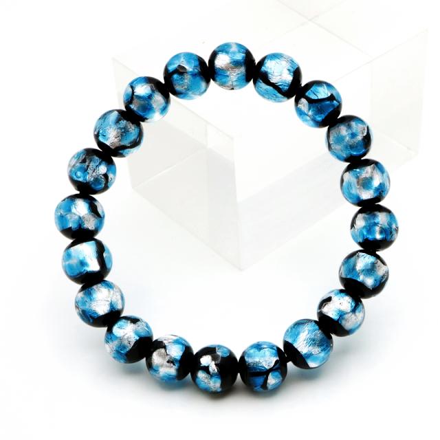 ホタルガラス ブレスレット 10mm ライトブルー 水色 とんぼ玉 沖縄 琉球 お土産