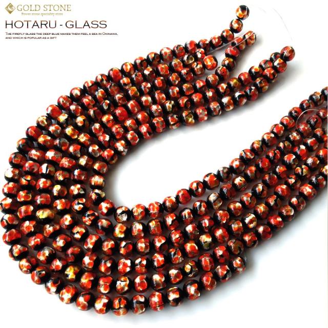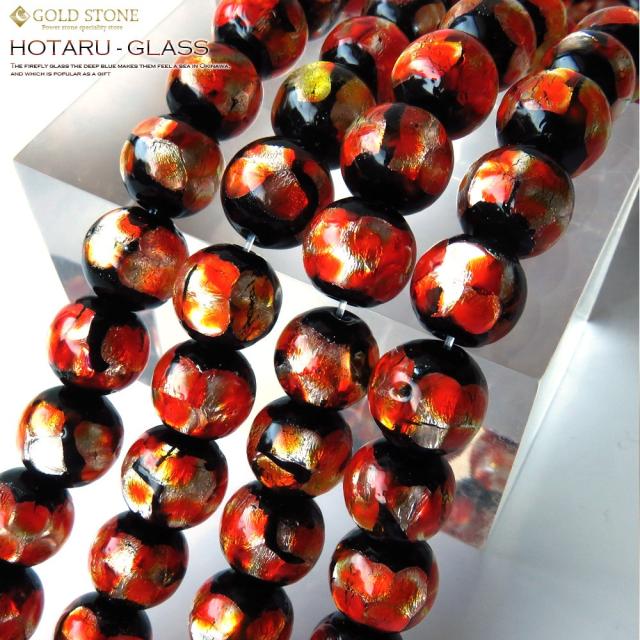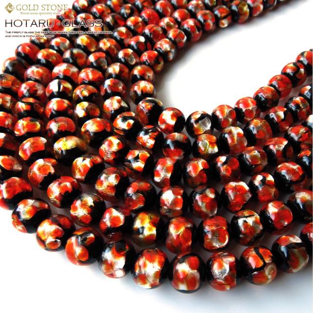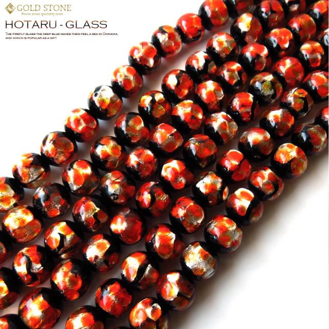 ホタルガラス 一連 ビーズ 10mm 長さ約37cm ブラッドオレンジ とんぼ玉 沖縄 お土産